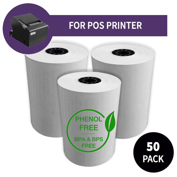Pack of 50 POS Printer Receipt Paper Rolls PHENOL FREE (BPA & BPS Free)