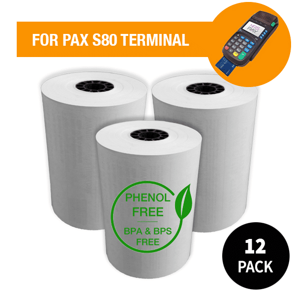 Pack of 12 PAX S80 Printer Paper Rolls PHENOL FREE (BPA & BPS Free)